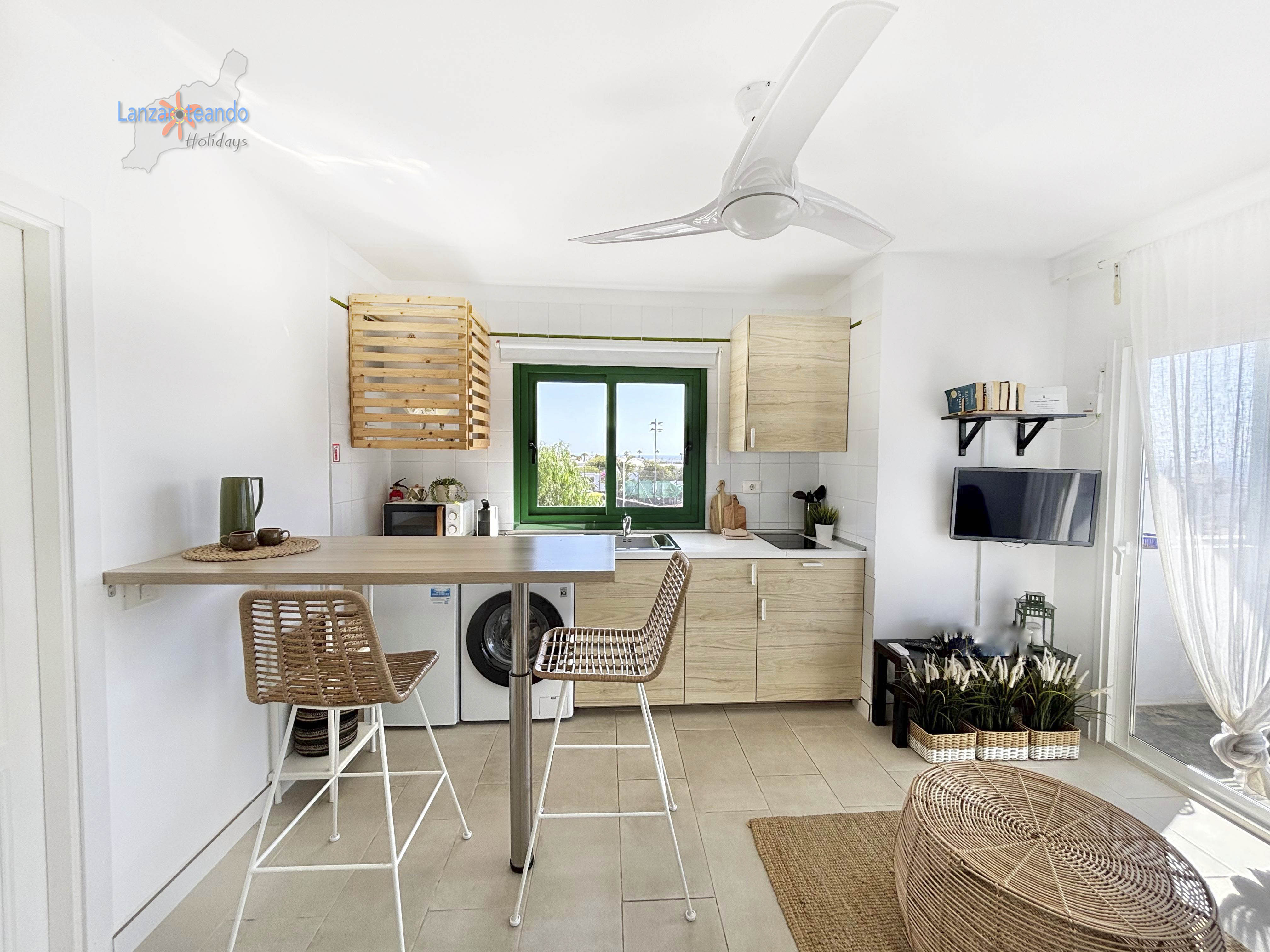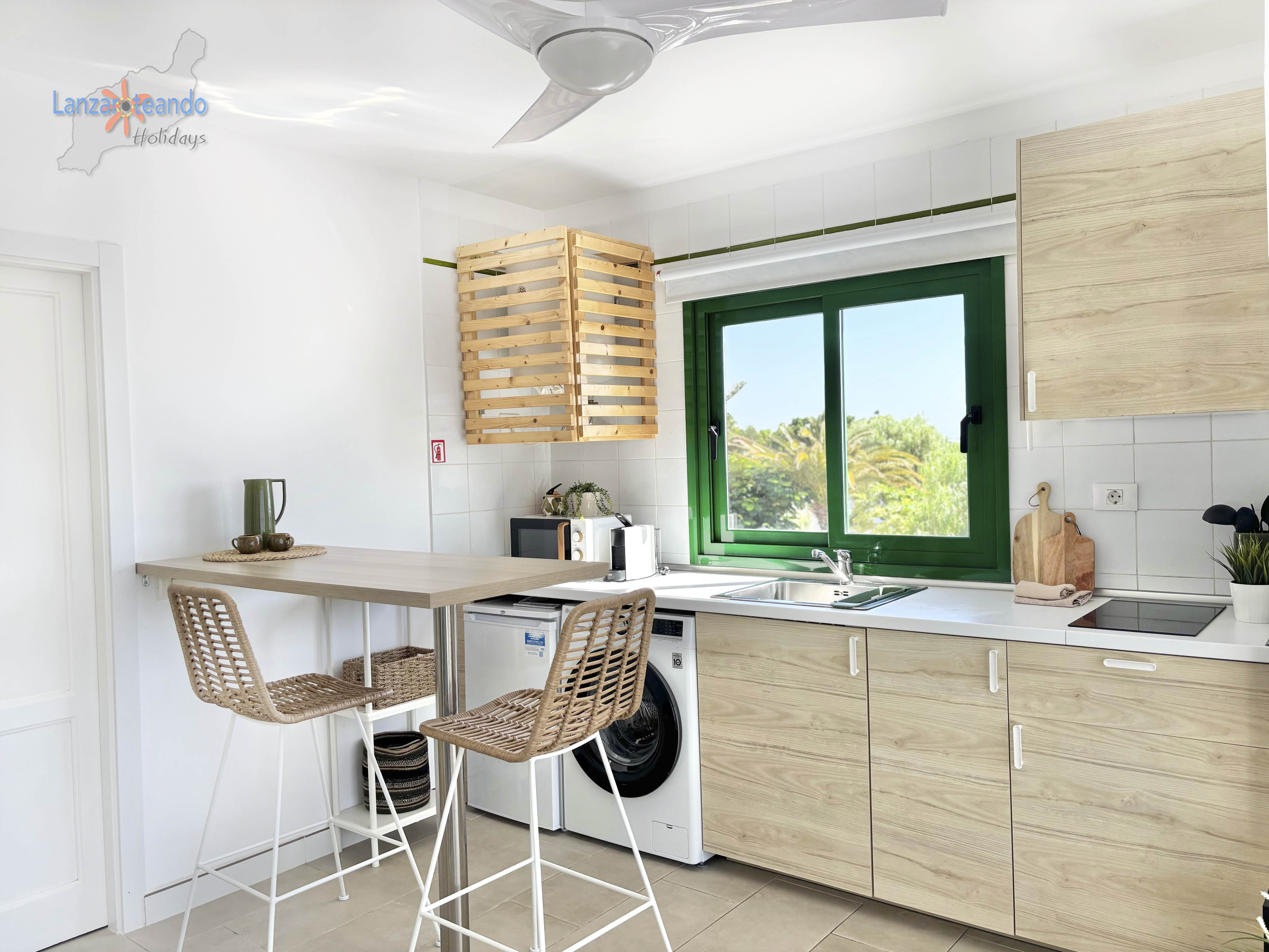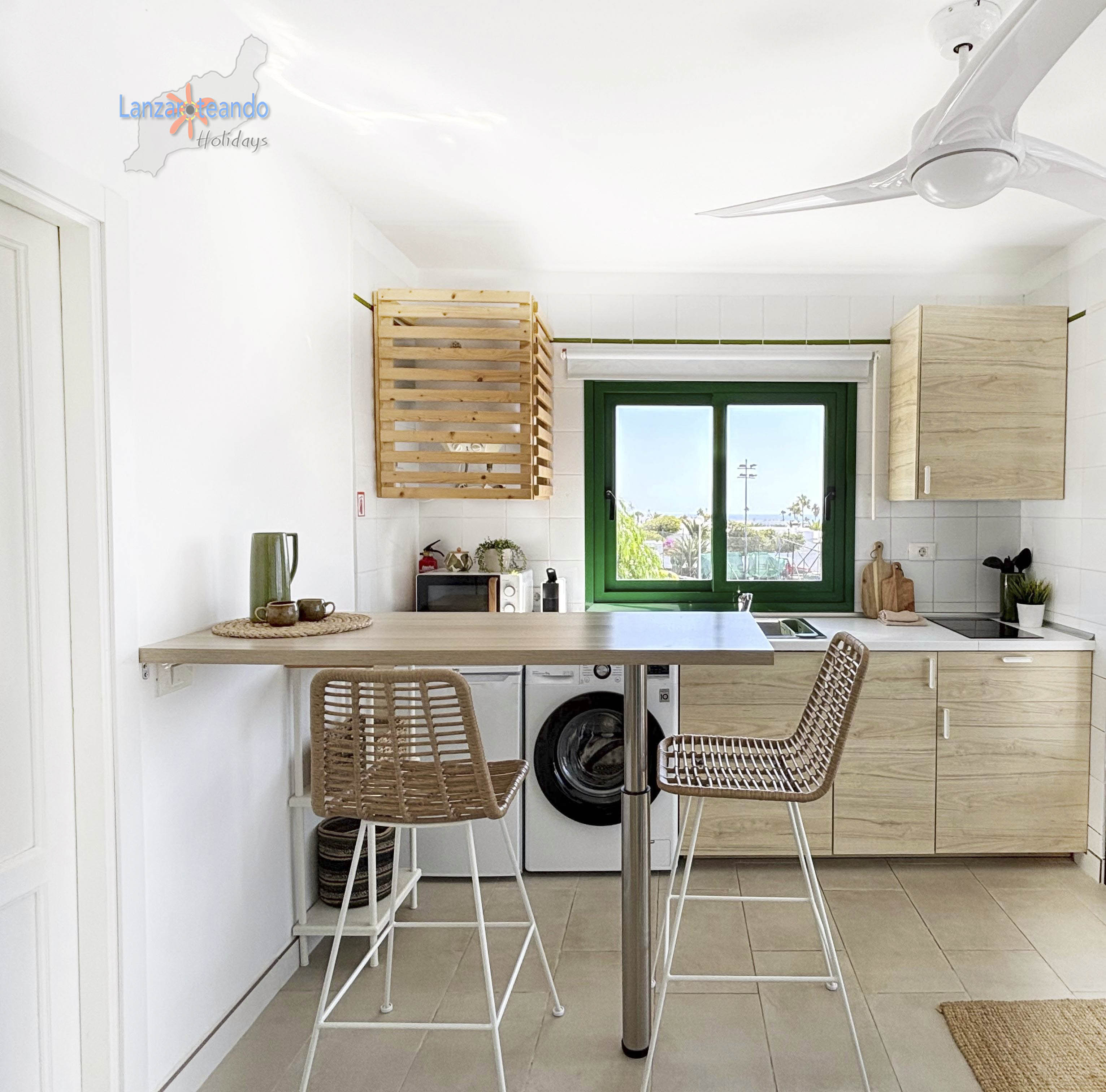 Casa Verde is a charming one-bedroom apartment, completely renovated in the Residencial Alegranza. Located on the first floor, it is decorated with relaxing colors, is very bright and decorated with unique details. It consists of a living/dining room with a high bar, a fully equipped kitchen, a bedroom and a bathroom with a shower.