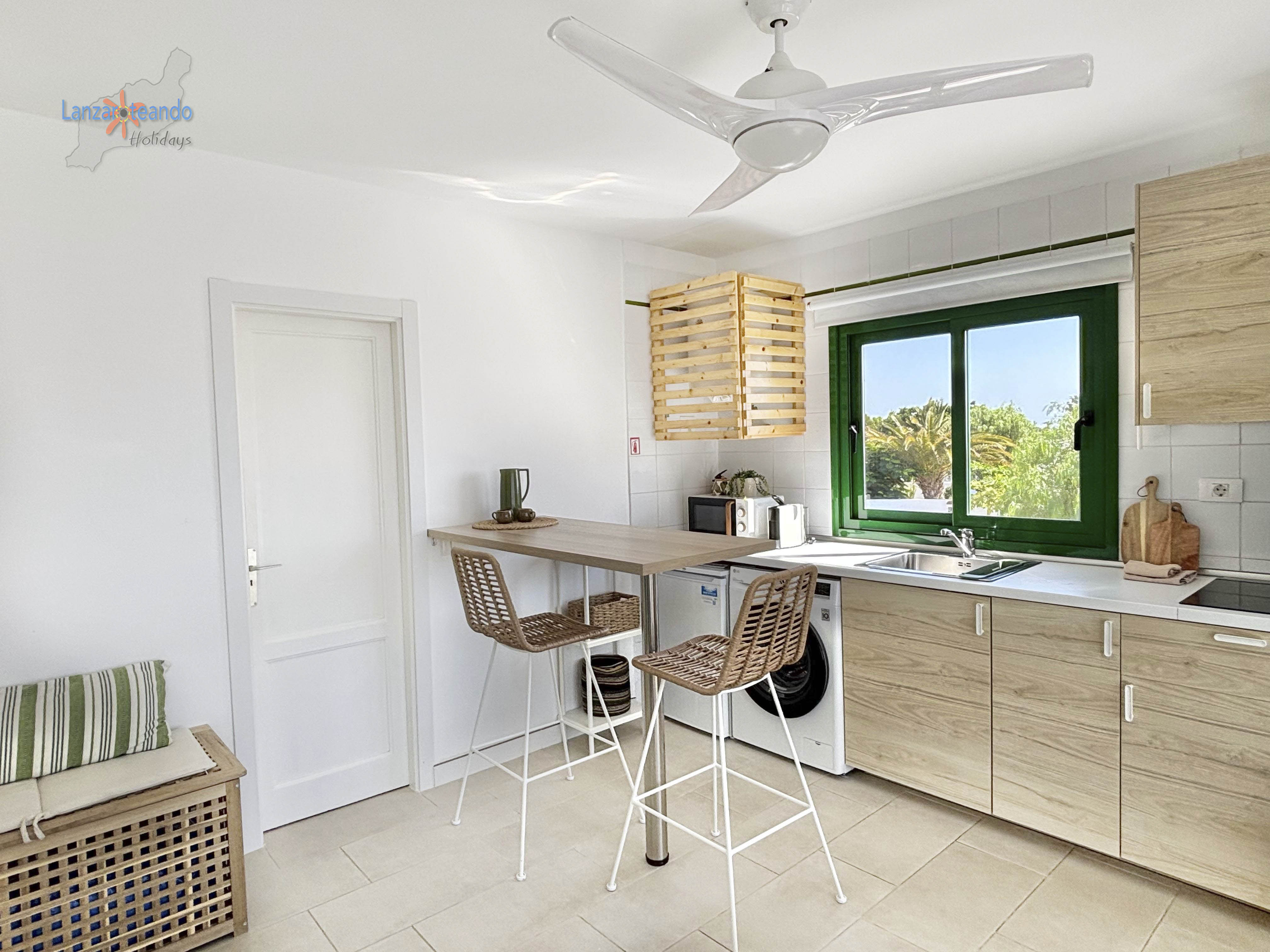 Casa Verde has capacity for 2 people. Additional amenities include high-speed Wi-Fi, 2 ceiling fans, television with IPTV service (all the English and European channels) and washing machine. Towels, including beach towels, bed linen and kitchenware are available to our guests free of charge. The Residencial Alegranza offers 2 swimming pools and a solarium area with sun loungers, ideal for relaxing.